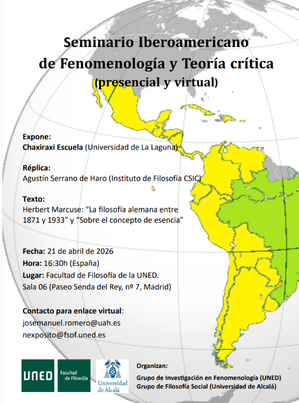 El próximo martes 21 de abril a las 16:30h (España peninsular) se celebrará la siguiente sesión del Seminario Iberoamericano de Fenomenología y Teoría crítica de...